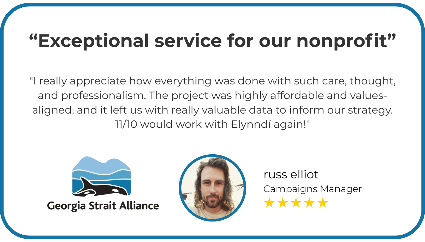 RAVEN (Respecting Aboriginal Rights and Environmental Needs) is a Canadian nonprofit dedicated to advancing Indigenous sovereignty and environmental justice through legal advocacy. Working alongside Indigenous Nations, RAVEN funds strategic legal challenges to protect land, water, and cultural rights.RAVEN sought to deepen its understanding of the people who sustain its work: its donors. While the organization knew broad details about its supporter base, it lacked precise insight into donors’ underlying values, motivations, and visions for change. With strategic planning on the horizon, leadership wanted reliable, nuanced data to guide future priorities and ensure alignment between organizational goals and donor commitments.This project marked RAVEN’s first use of a formal survey to engage stakeholders. The intent was not only to gather statistics, but to uncover the intersections between who donors are and what RAVEN does—strengthening relationships and informing a long-term, donor-aligned strategy.
