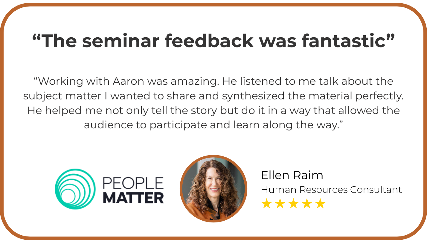 The event’s framework combined multiple approaches—multimedia learning, culturally responsive pedagogy, nonviolent communication, and dialogic learning—within a single high-stakes program. Without a clear design methodology, this mix could easily leave both facilitator and participants feeling lost.However, backwards design—arguably the most central and critical tool for “thinking like a teacher”—provided the structure to hold it all together. The process with Ianna began by identifying the essential takeaway her client wanted participants to leave with: the ability to recognize and influence firm culture in ways that open space for women attorneys to thrive. From there, we defined essential learning outcomes (ELOs) that would build toward that takeaway. These outcomes then shaped a detailed session outline, sequencing individual reflection, small-group discussion, and whole-group synthesis in a way that reinforced the central goal at each step. Only then was the slide deck created—designed to visually carry participants through that journey and keep the throughline visible from the first moment to the last.This approach ensured that even with a wide range of content and formats, the program stayed coherent, purposeful, and anchored to what mattered most, even in the face of spatial and conceptual challenges.